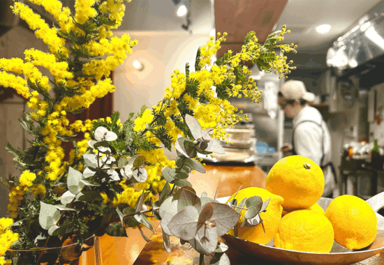 オーナーシェフが目の前で料理する、ライブ感のある空間で食事をお楽しみください。